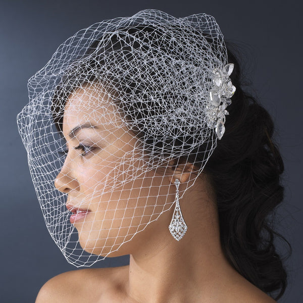 Geometric Rhinestone & Swarovski Crystal Silver Bridal Wedding Hair Comb on White or Ivory Birdcage Bridal Wedding Veiling 8118