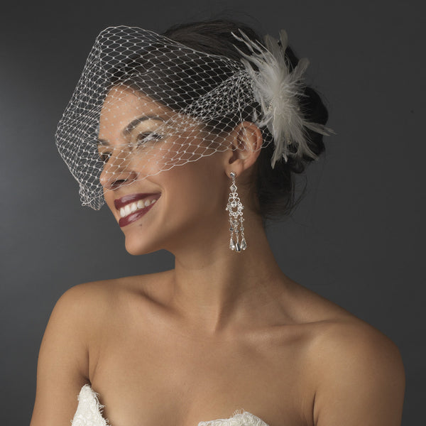 White or Ivory Bridal Wedding Cage Bridal Wedding Veil Feather Accent Bridal Wedding Hair Clip 1027