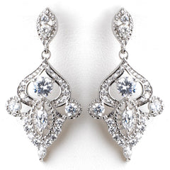 Rhodium Silver Vintage CZ Dangle Bridal Wedding Earrings 3908