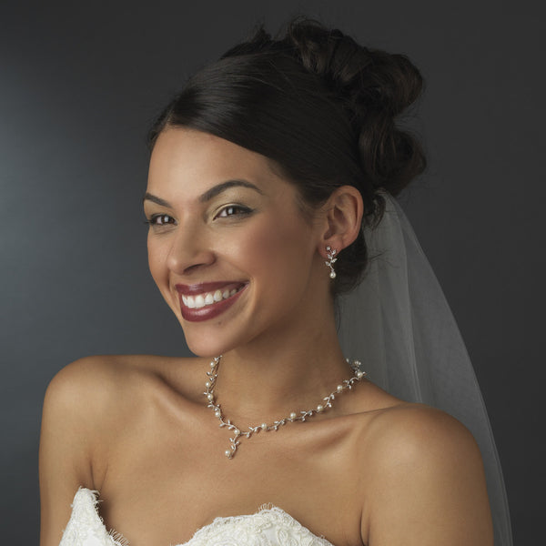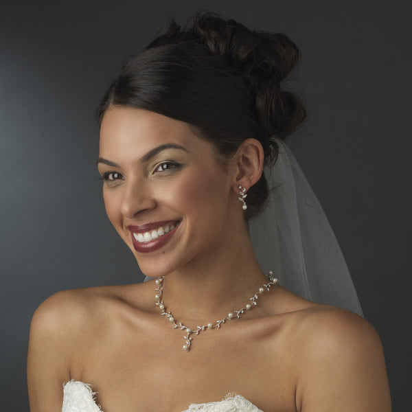 Silver & White Pearl Vine Bridal Wedding Necklace N 2657