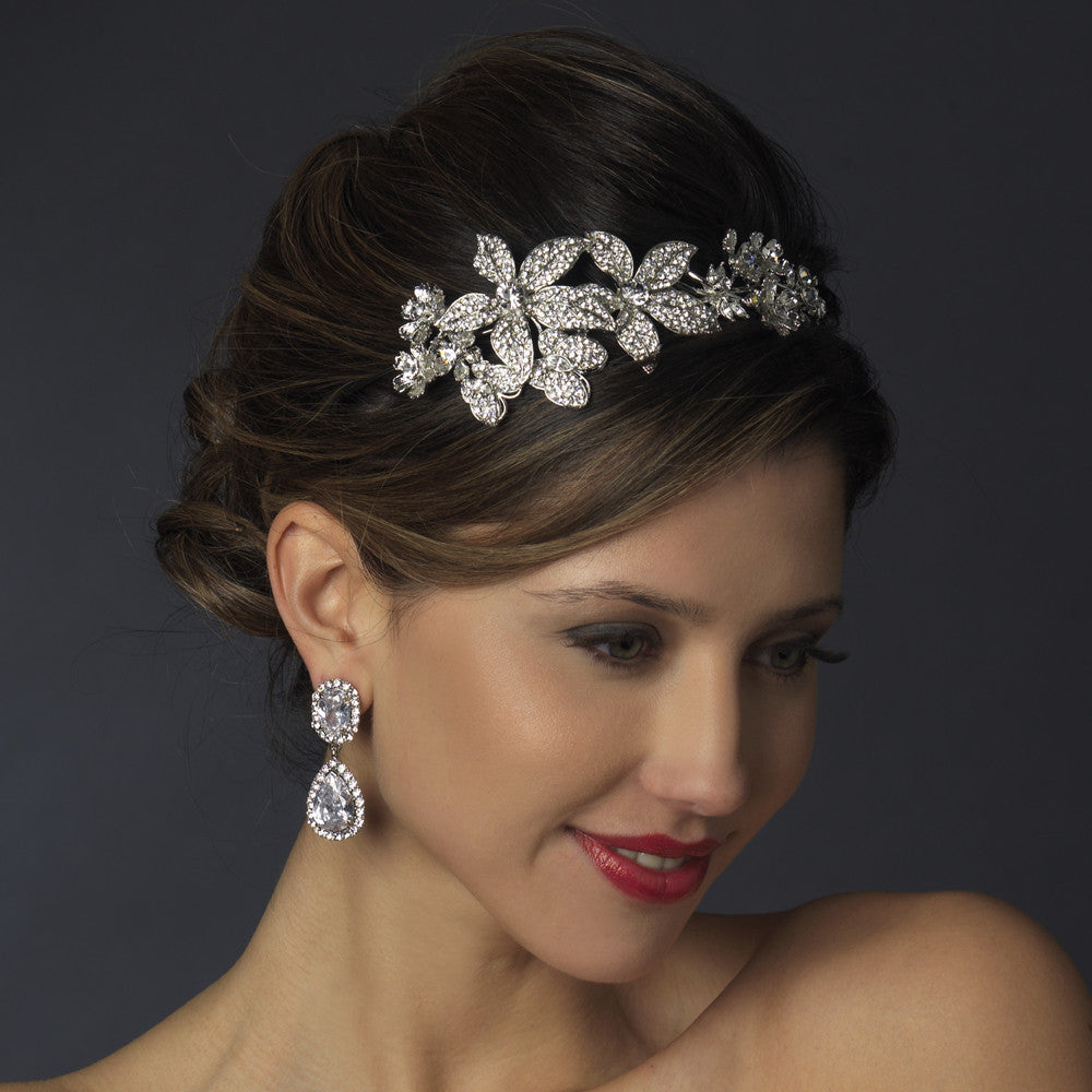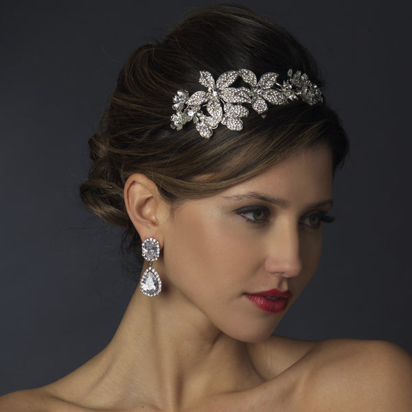 Ravishing Silver Clear CZ Bridal Wedding Hair Clip On Bridal Wedding Earrings 8483