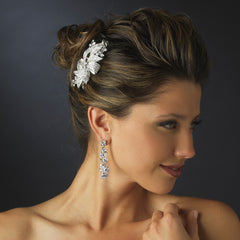 Silver Clear Floral Leaf Bow Ribbon Bridal Wedding Hair Clip with Rhinestones