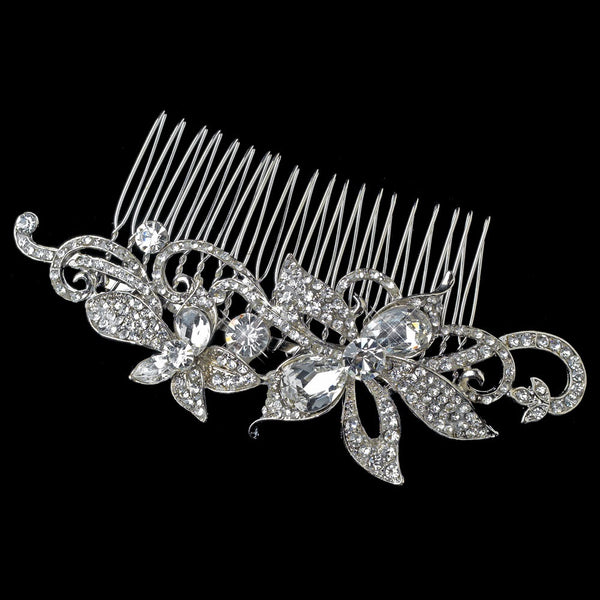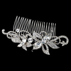 Rhodium Clear Floral Bridal Wedding Hair Comb with Rhinestones & Gemstones