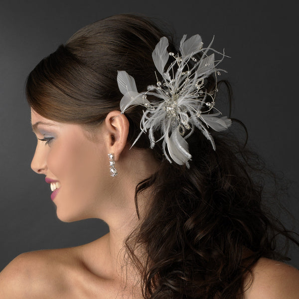 SKU:This dreamy crystal rhinestone feather flower bridal hair comb is an extraordinary choice for any classic, modern or vintage inspired bride. It features fabulous sprays of soft feathers, sprigs of dazzling clear rhinestones and glittering clear crystal beads all arranged into a delightful flower shape.