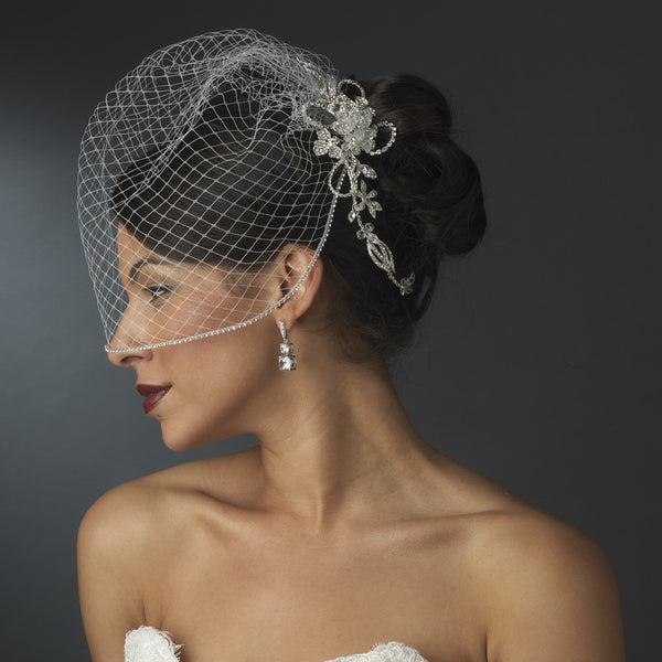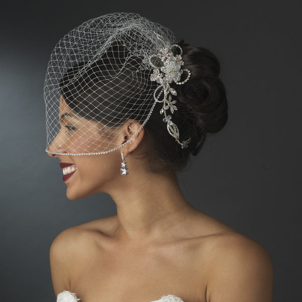 Eye-catching and elegant, this comb features a floral design crafted with Swarovski crystal beads and rhinestones, and several trios of opal inspired rhinestones at the center of the flowers. A long...