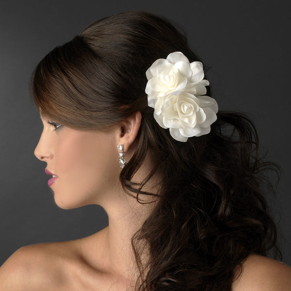 Graceful White or Ivory Double Flower Bridal Wedding Hair Clip or Bridal Wedding Hair Comb 5690