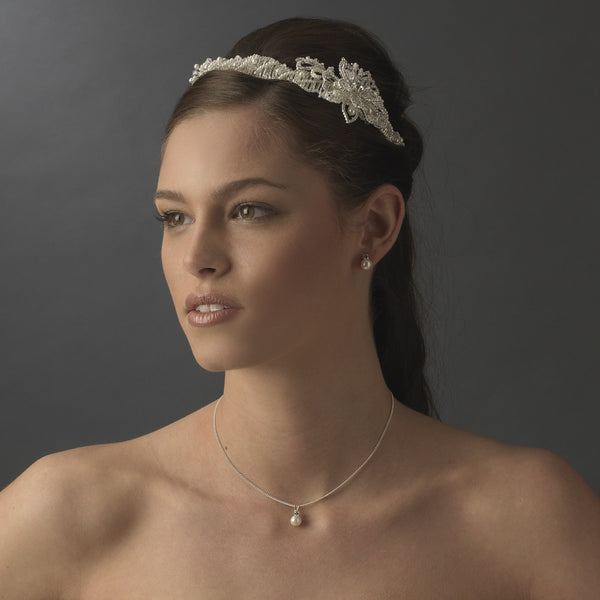 Pearl & Rhinestone Couture Side Accented Flower Bridal Wedding Headband - HP 8354
