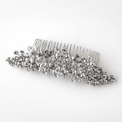 Rhodium Silver Floral Flexible Rhinestone Bridal Wedding Hair Comb 57