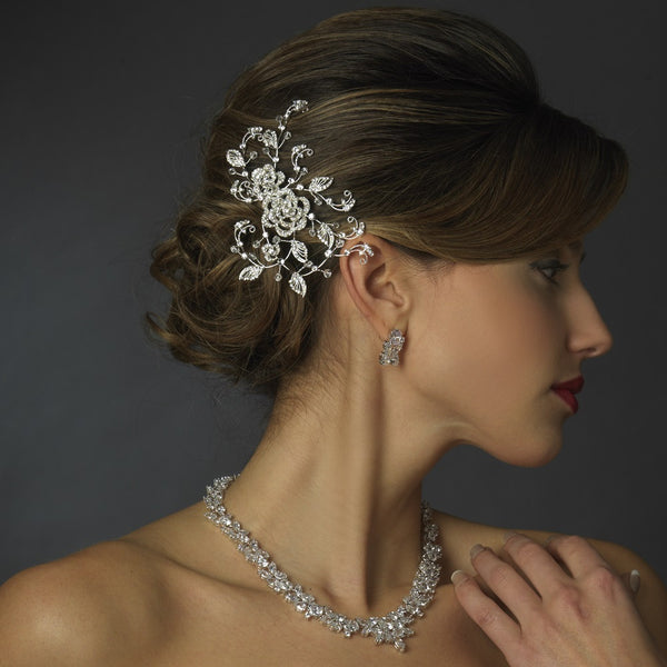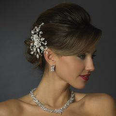 An elegant antique silver comb in round cut rhinestones and encrusted clear crystals embellishment in a floral leaf design that is plated with antique silver. This piece is soft and elegant...