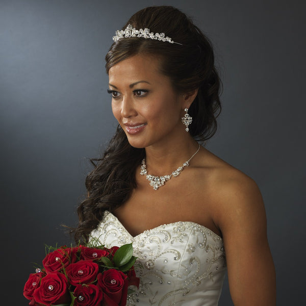 Silver Crystal Bridal Wedding Necklace Earring Set NE 8310