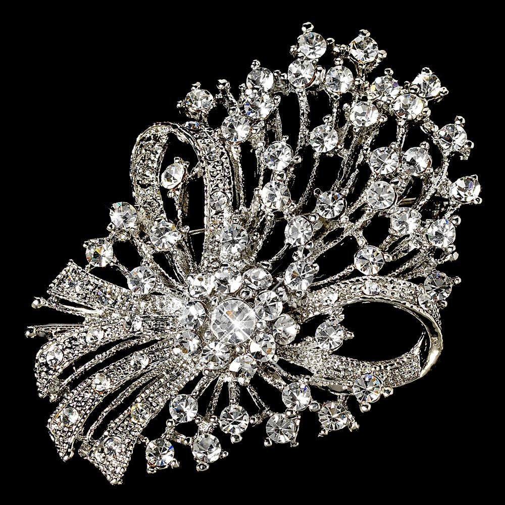 Elegant Vintage Crystal Bridal Wedding Hair Pin for Bridal Wedding Hair or Gown Bridal Wedding Brooch 17 Antique Silver Clear