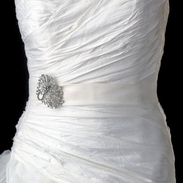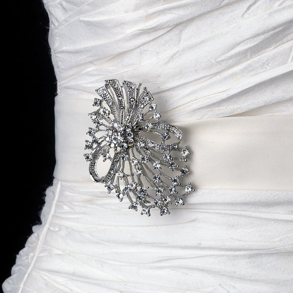 SKU:A delicately knotted ribbon of silver plating makes this piece a simple and stunning accessory to your wedding day. Silver plated stalks emerge from the top and sides of the brooch, and are capped with glittering rhinestones. Ideal for your modern wedding