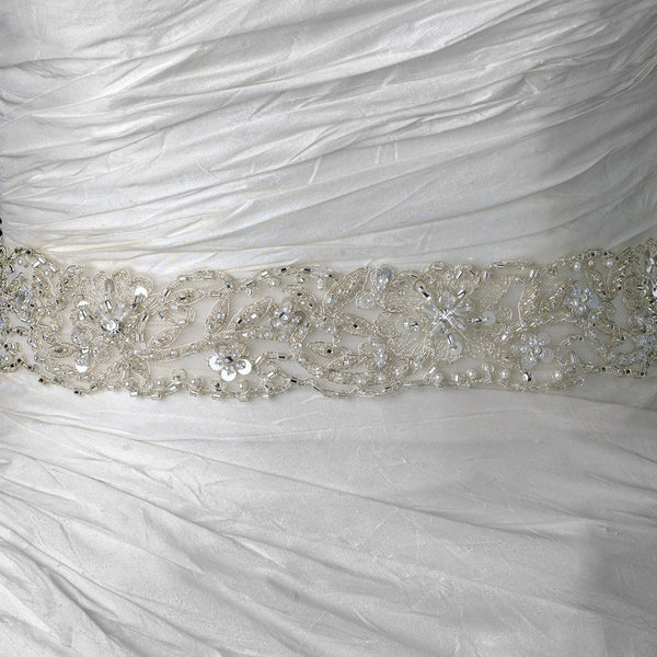 Ivory Lace Beaded Embroidered Applique Bridal Wedding Belt with Flowers 275