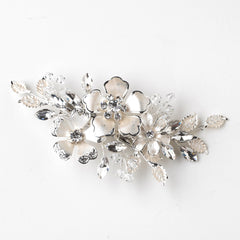 Silver Ivory Enameled Flower Bridal Wedding Hair Clip 34 w/ Swarovski Crystal Beads & Rhinestones